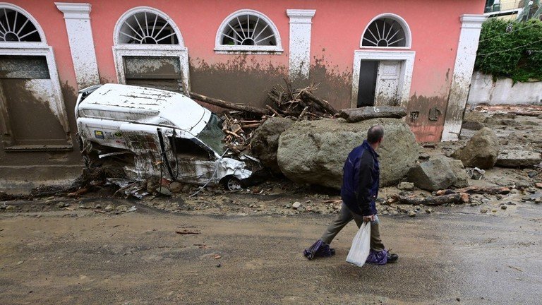 I ndodhur në brigjet e Mesdheut në Gjirin e Napolit, ishulli Ischia shënoi më shumë se 12 cm reshje në gjashtë orë gjatë natës. Reshjet lanë gjashtë deri në shtatë metra baltë dhe mbeturina në anën e kreshtës malore vullkanike të ishullit.