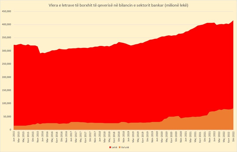 Investimi i sektorit bankar në borxhin e qeverisë shqiptare arriti në më shumë se 498 miliardë lekë ose 4.25 miliardë euro në fund të muajit shtator.