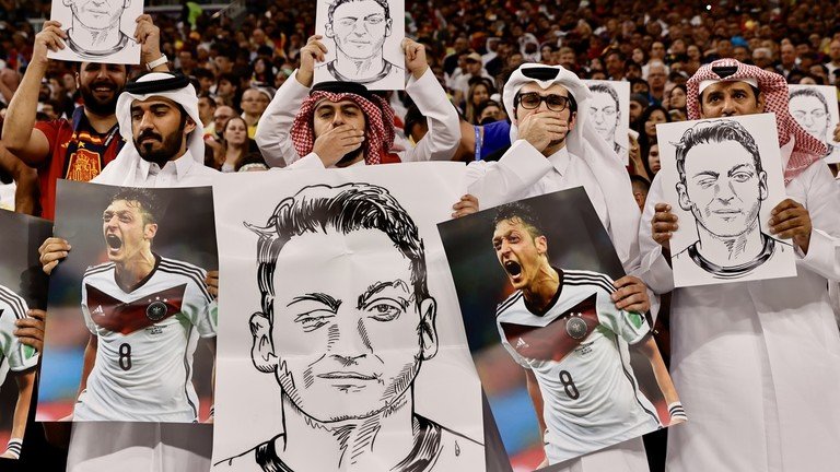 Disa tifozë në tribunat në ‘Al Bayt’ organizuan një protestë ‘hakmarrëse’ të dielën, me disa që u panë duke ecur përreth teksa mbulonin gojën dhe duke tundur pamjet e ish-yllit të Gjermanisë, Ozil.