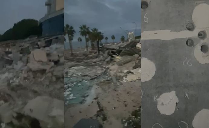 Në pamje shihet gjithashtu se forcat xheniere kanë bërë gati shpimet për vendosjen e eksplozivit, me të cilat pritet të kryhet edhe shpërthimi i komanduar i ndërtesës.