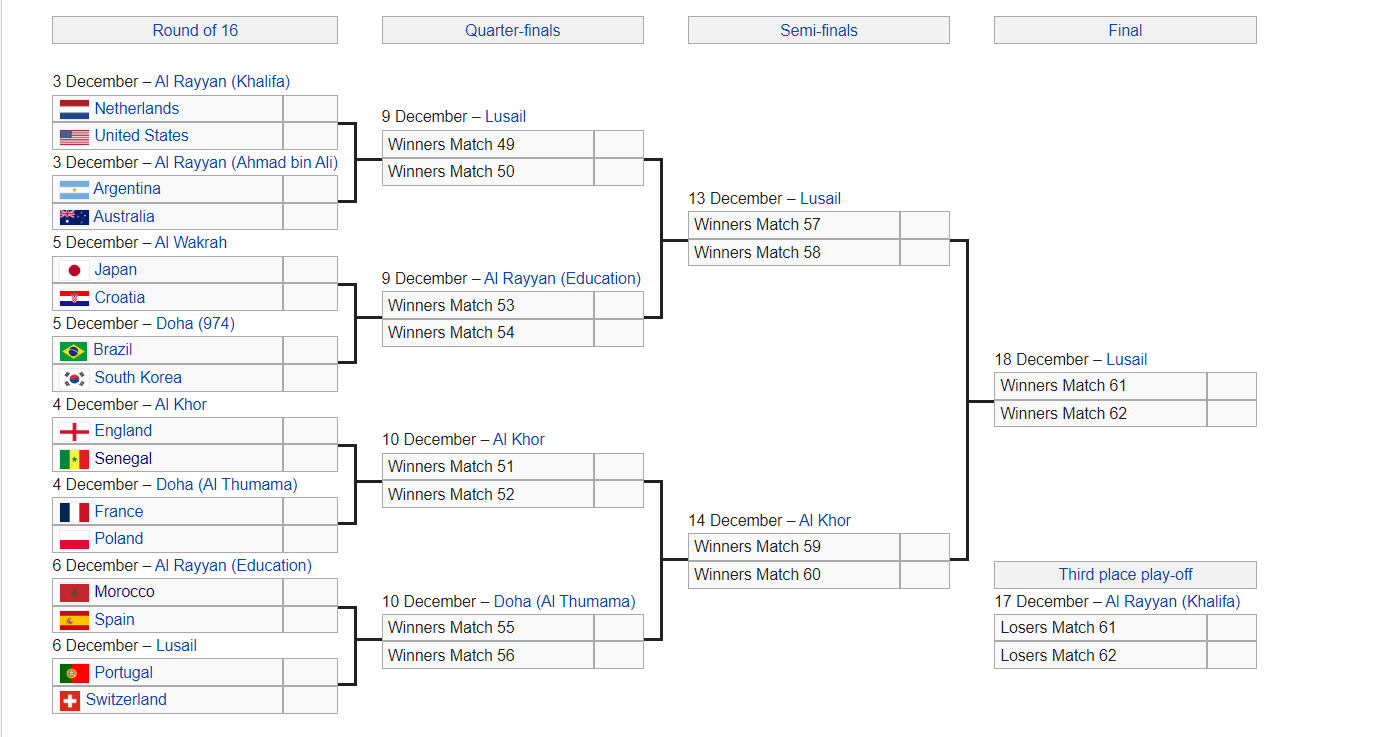 Pas përfundimit të ndeshjeve të mbrëmjes së sotme është përcaktuar kalendari i ndeshjeve për fazën finale të Botërorit të Katarit.