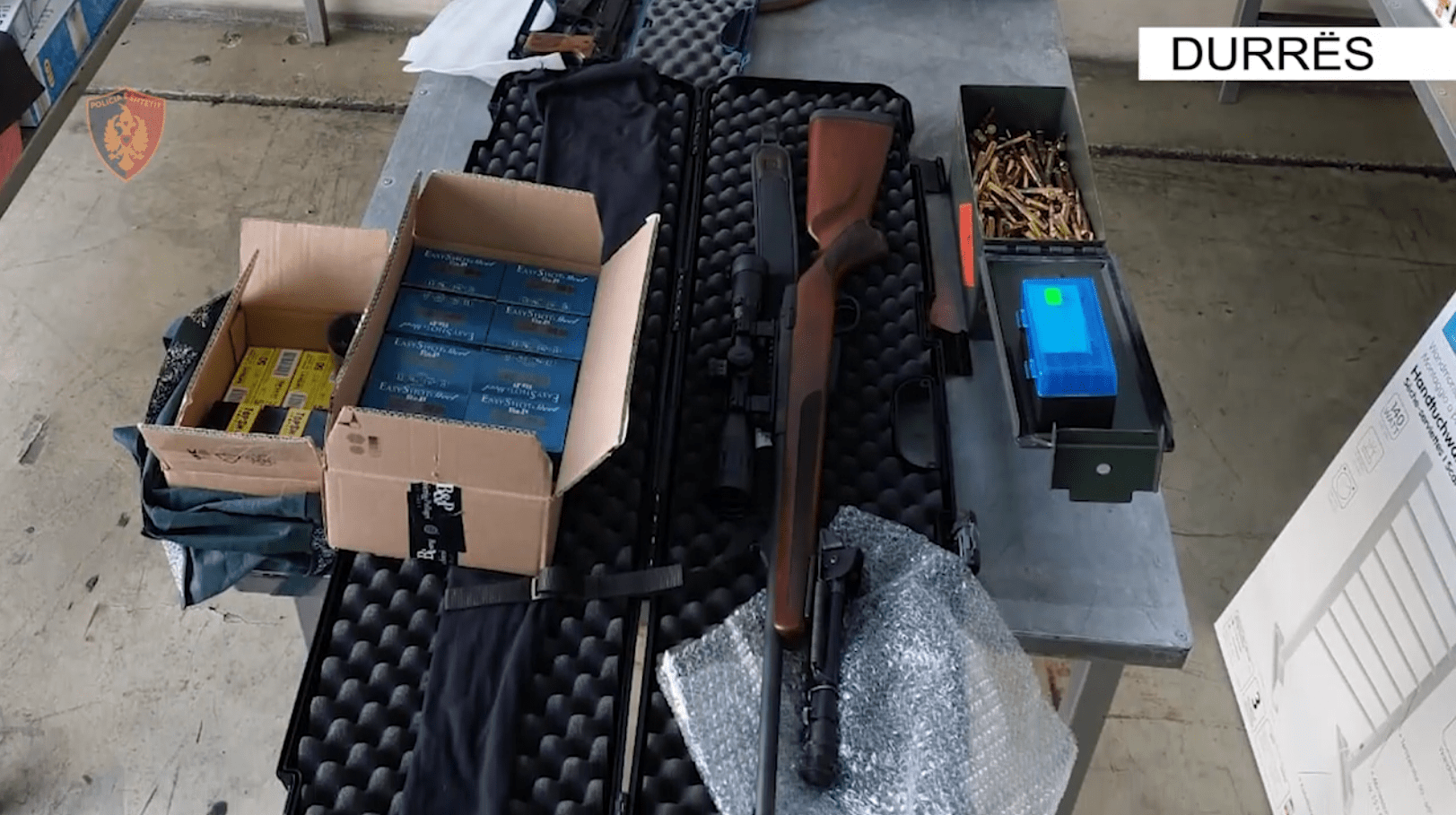 Sekuestrohen një armë zjarri snajper, një pistoletë, një armë gjahu dhe municion luftarak.