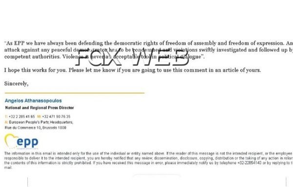 Në reagimin e publikuar nga Faxnews, thuhet se PPE mbështet gjithmonë të drejtat demokratike të lirisë së tubimit dhe lirisë së shprehjes dhë se çdo sulm kundër çdo protestuesi paqësor duhet të dënohet.