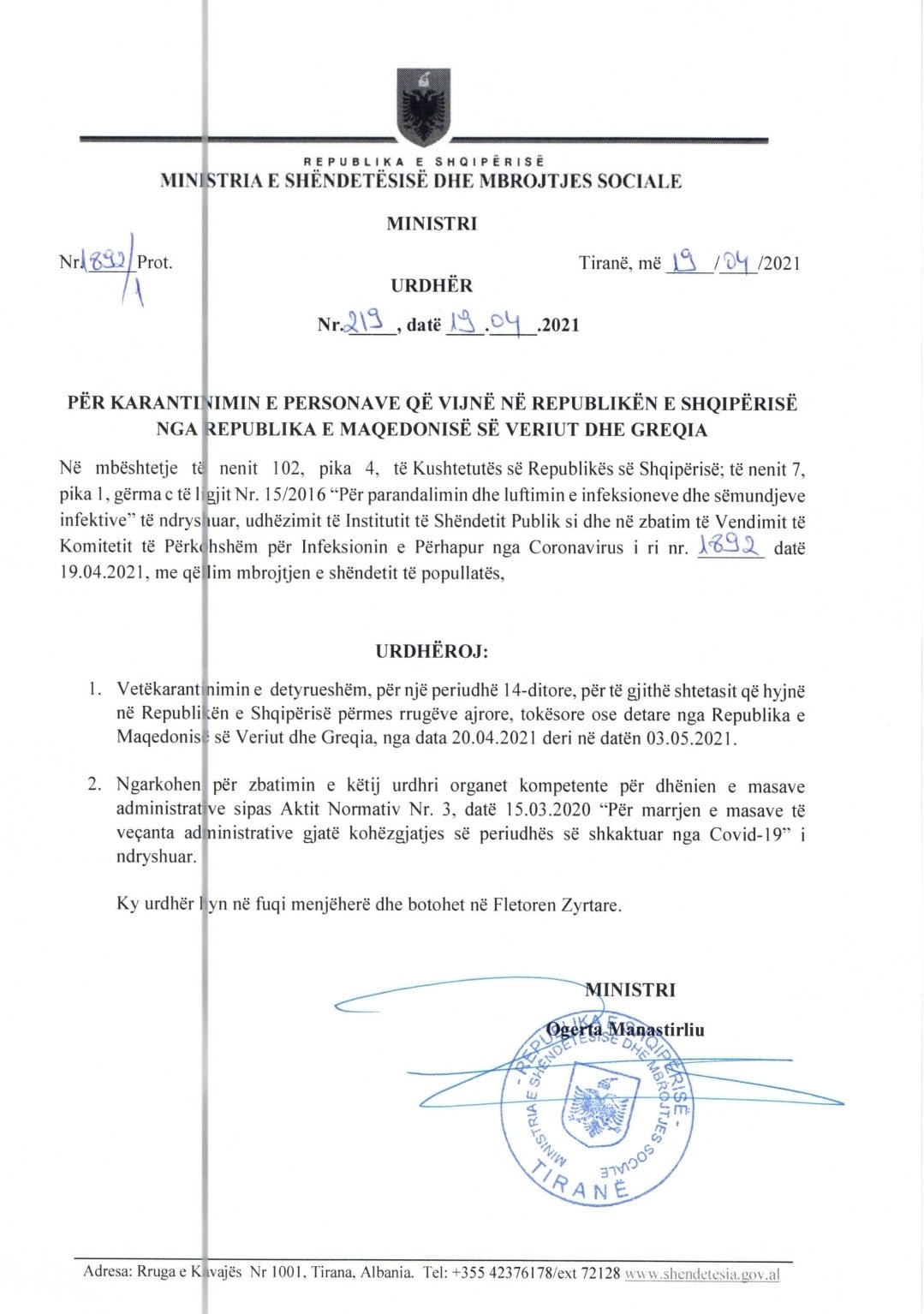 “Gjykata Kushtetuese delegjitimon dhe rrezon perfundimisht zgjedhjet mafioze te 25 prillit! Zgjedhjet e 25 prillit delegjitimohen dhe rrezohen perfundimisht nga Gjykata Kushtetuese! Gjykata kushtetuese ka vendosur Deklarimin e Urdhrit nr. 219, datë 19.04.2021 “Për karantinimin e personave që vijnë në Republikën e Shqipërisë nga Republika e Maqedonisë së Veriut dhe Greqia” si i papajtueshëm me Kushtetutën e Republikës së Shqipërisë.” Qeveria me nje Urdherin 19.04.2021 te Ministres se shendetesise Manastirliu, ne dhunim te Kushtetutes pengoi dhjetra mijra qytetare shqiptare nga Greqia dhe Maqedonia, qe te votonin ne 25 prill me qellimin e vetem manipulimin e rezultatit te zgjedhjeve. Dhjetra mijra qytetare shqiptare nga Greqia dhe Maqedonia u ndaluan ne menyre te dhunshme te votojne nga qeveria ne 25 prill sepse i prisheshin hesapet horrave te rilindjes per vjedhjen e pushtetit! Pushteti i rilindjes pas 25 prillit 2021 eshte produkt i vjedhjes se certifikuar juridikisht dhe boterisht dhe si i tille totalisht i paligjshem.” – shkruan Vasili.