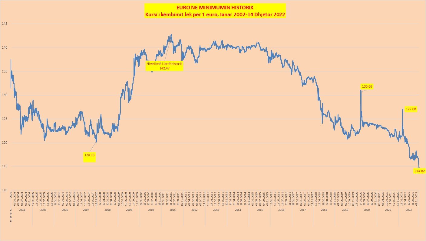 Monedha europiane ka pasur një tendencë të vazhdueshme rënëse gjatë gjithë vitit, pavarësisht importeve të mëdha të energjisë dhe shtrenjtimit të importeve. Në datë 14 dhjetor, kursi Euro – Lek rezulton në rënie me 4.8% krahasuar me fundin e vitit 2021.