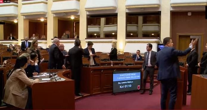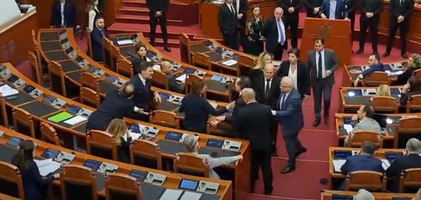 Në një moment duket sikur ka patur një konflikt edhe mes deputetit Luan Baçi me Enkelejd Alibeajn, që gati sa nuk u përplasën fizikisht.