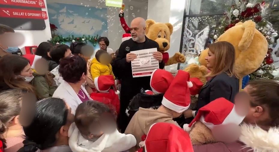 “Në Pediatrinë e Tiranës, ku çelet investimi i ri për fazën e dytë të modernizimit të spitalit të fëmijëve në QSUT, dhe për të gëzuar sadopak të vegjlit që në këtë vigjilje Krishtlindjeje, po marrin trajtim, nën kujdesin e stafeve mjekësore.”– shkruan Rama krahas një video nga vizita e tij në Pediatri, ku shfaqet me fëmijë, duke u përqafuar me ta, duke luajtur dhe dhënë dhuratat.