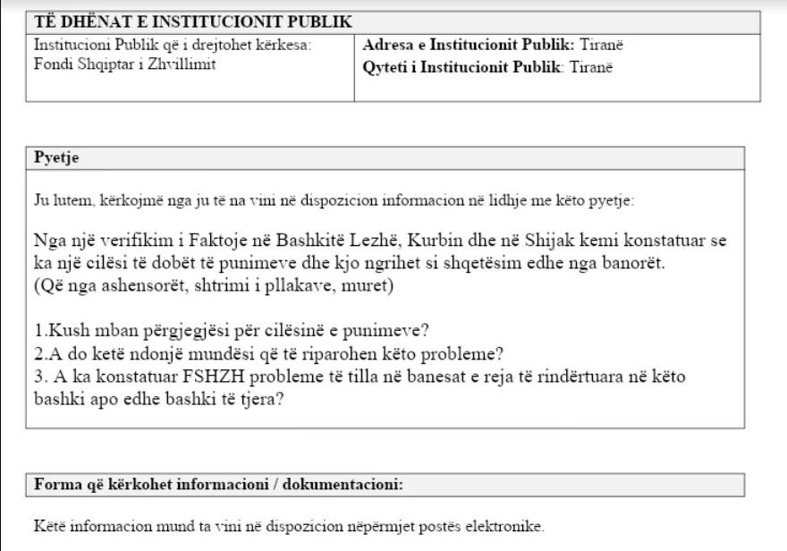 Nisur nga shqetësimet e qytetarëve, Faktoje iu drejtua me një kërkesë për informacion Fondit Shqiptar të Zhvillimit, Bashkisë Lezhë, asaj të Shijakut si dhe Bashkisë Kurbin.