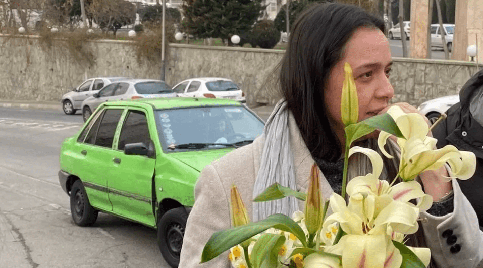 Në nëntor, ajo kishte pozuar me flokët zbuluar, duke mbajtur në dorë një tabelë ku shkruhej “Gruaja, jeta, liria” – slogani kryesor i lëvizjes protestuese.