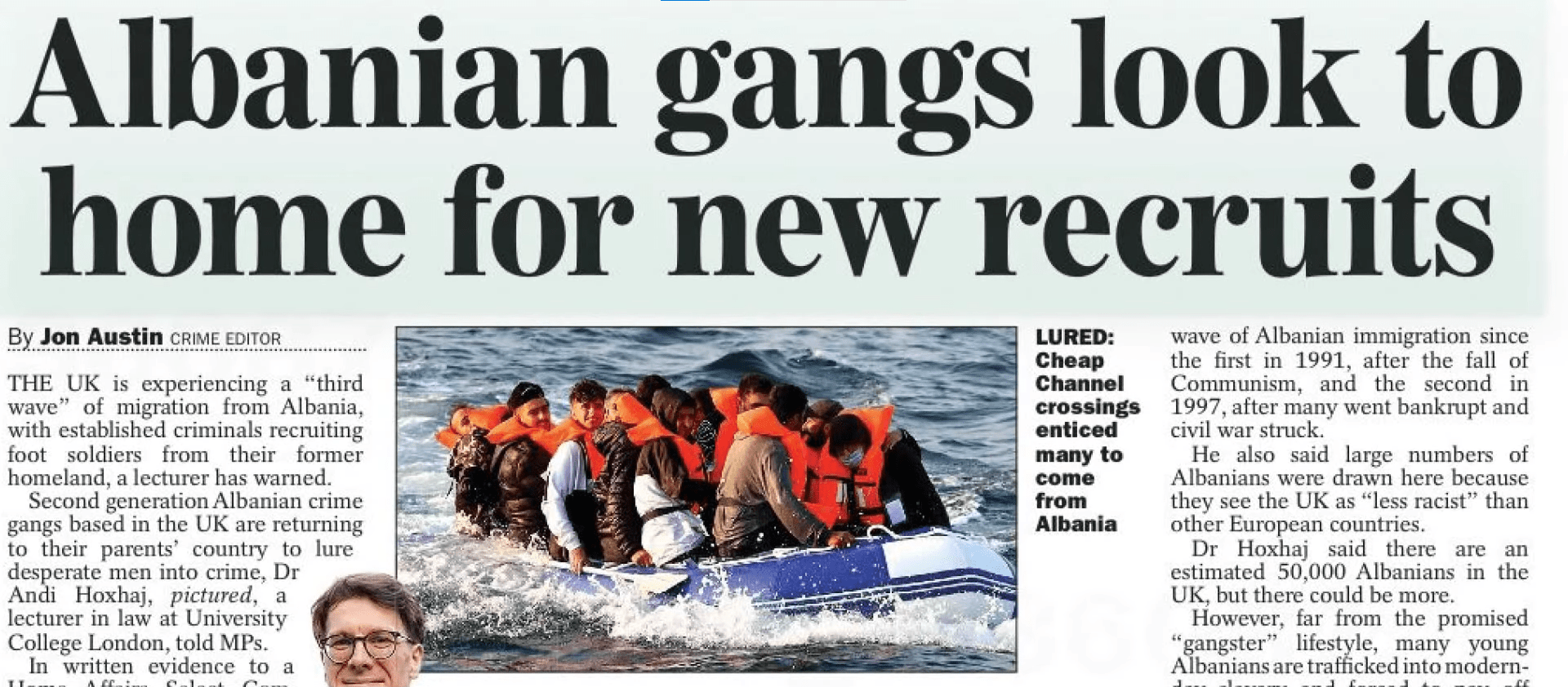 “Gjenerata e dytë e kriminelëve shqiptarë në Angli po kthehen në vendin e prindërve të tyre duke tërhequr njerëz të pashpresë për tu bërë pjesë e krimit” citohet në këtë gazetë Dr Andi Hoxhaj, pedagog në University College London.