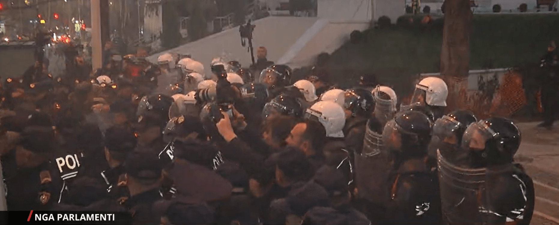 Protestuesit po hedhin mjete piroteknike shashka e tymuese.
