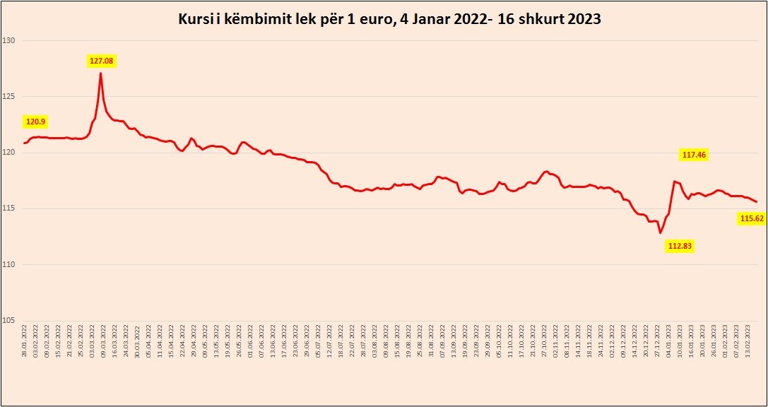 Sipas kursit zyrtar të këmbimit, të Bankës së Shqipërisë, Euro u këmbye të enjten me 115.62 lekë. Monedha europiane po u afrohet niveleve më të ulëta të regjistruara gjatë këtij viti, ndërsa ka humbur afërsisht një pikë në kursin e këmbimit me lekun që prej fillimit të muajit shkurt.