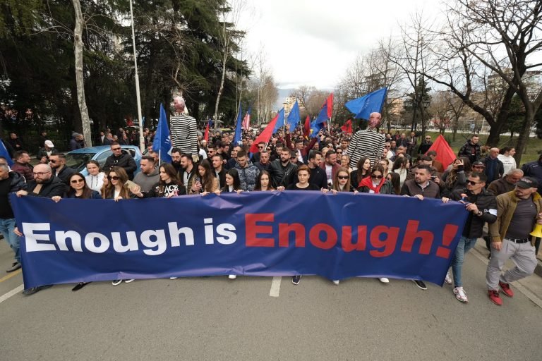 Të rinjtë e Forumit Rinor të PD kanë nisur marshimin drejt Bulevardit me pankartën “mjaft është mjaft”.