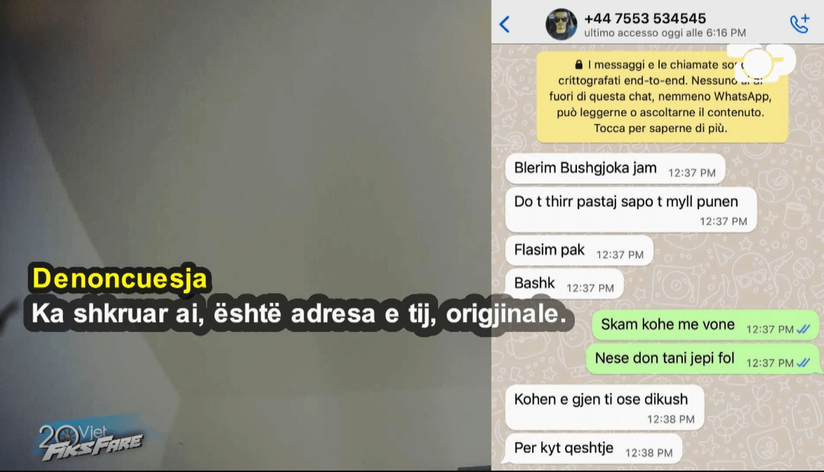 “Para 4 vitesh kam komunikuar për rreth një javë në rrjetet sociale me këtë djalin dhe më pas i mbylla komunikimet me të, por sot e kësaj dite me këto biseda ai më shantazhon duke ia dërguar familjes time dhe bashkëshortit“, shprehet denoncuesja. Ajo pohon se që në momentin që ia kishte komunikuar që nuk do të flisnin më, ai e kishte kërcënuar se do të bënte publike bisedat e tyre nëse nuk do i jepte 2 mijë euro. Pyetjes së gazetarëve të Fiksit se pse nuk i është drejtuar policisë , vajza u shpreh se ka shkuar disa herë të bëjë denoncim. Por denoncimi nuk i është mbajtur nga policia, pasi djali që ajo do të akuzojë të atin e ka polic. Bëhet fjalë për Blerim Bushgjokën djali i policit Pal Bushgjoka.