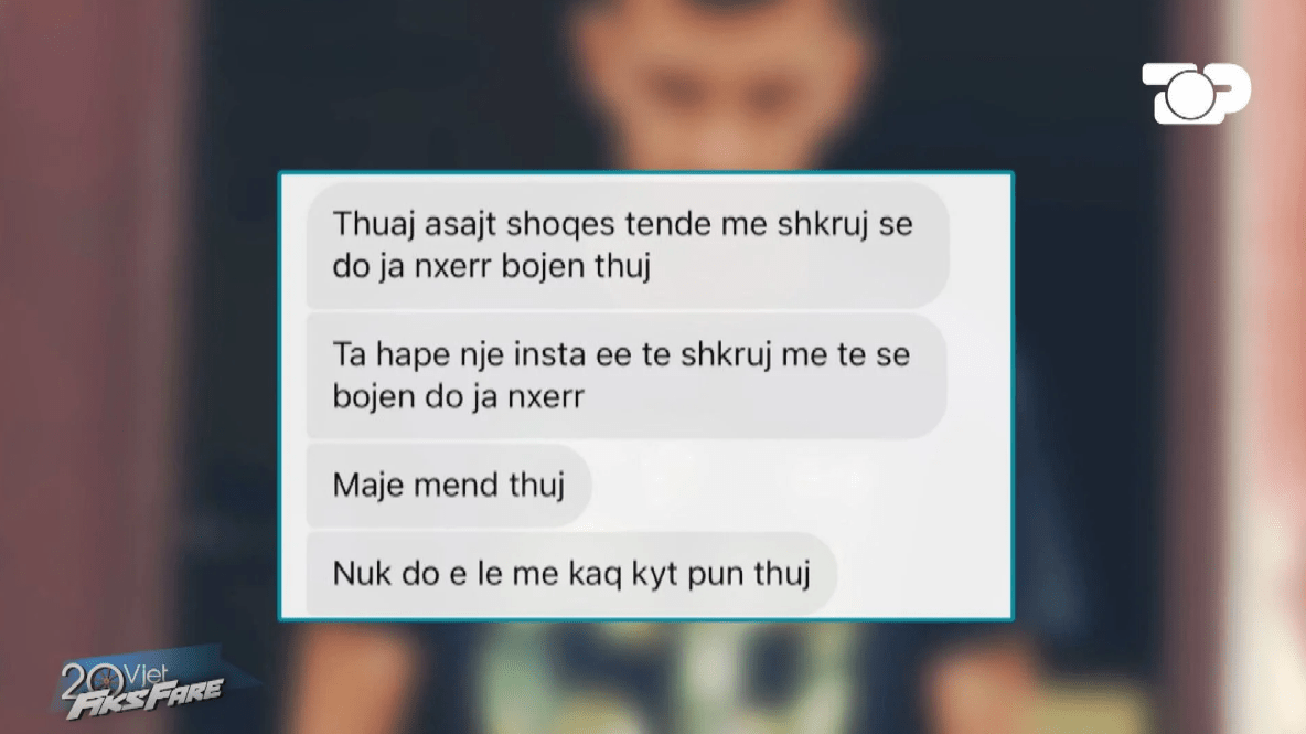 I tillë është edhe rasti transmetuar në Fiks Fare mbrëmjen e së hënës,ku një e vajzë nga Lezha shantazhohet nga një djalë me të cilin kishte shkruajtur për një javë në rrjetet sociale. Edhe pse kanë kaluar plot 4 vite nga ky komunikim përndjekja dhe shantazhimi ende vazhdon.