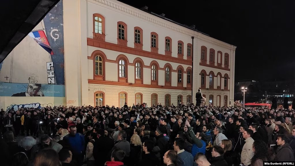 Pas adresimit para Fakultetit të Filozofisë, protestuesit marshuan në rrugët e Beogradit dhe u ndalën para ndërtesës së Radio Televizionit të Serbisë (RTS), nga ku kërkuan “një opinion ndryshe, jo vetëm që Kosova është humbur” gjatë transmetimit në këtë kanal shtetëror.