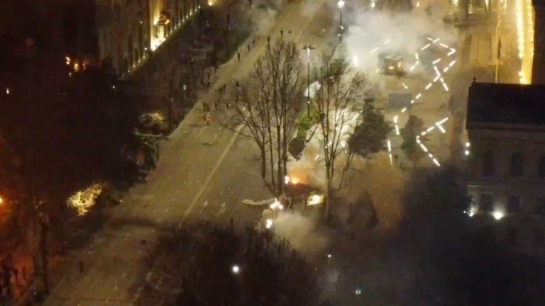 Megjithëse disa nga protestuesit u shpërndanë, transmetimet e drejtpërdrejta nga rrjetet televizive lokale treguan se mijëra ishin ende të mbledhur jashtë hyrjes së parlamentit në Sheshin Rustaveli, duke sfiduar urdhrat e policisë për t’u larguar.