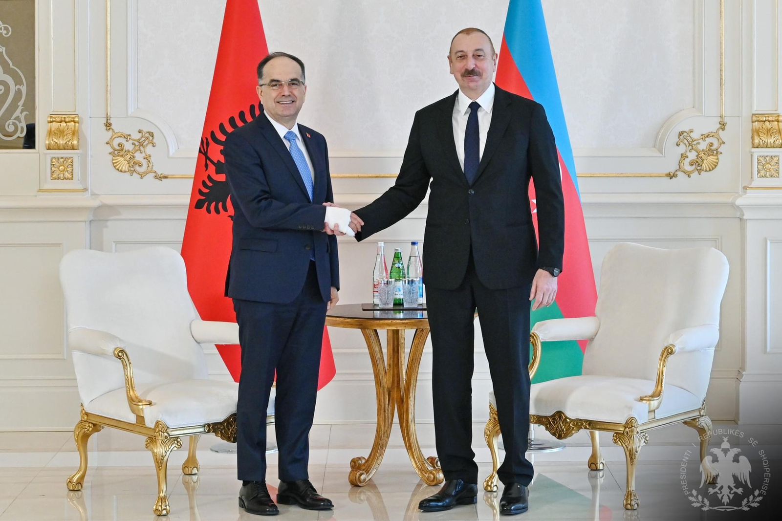 Presidenti Begaj është parë me dorën e djathtë të fashuar teksa ka takuar homologun azerbajxhanas Aliyev në forumin ‘Global Baku Forum’.