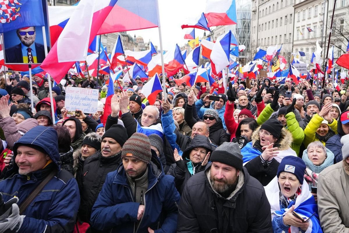 Organizuar nga partia e krahut të djathtë Ligj, Respekt, Ekspertizë (PRO), tubimi pa demonstruesit që valëvitnin flamuj çekë dhe pankarta duke kërkuar dorëheqjen e qeverisë së kryeministrit Petr Fiala.