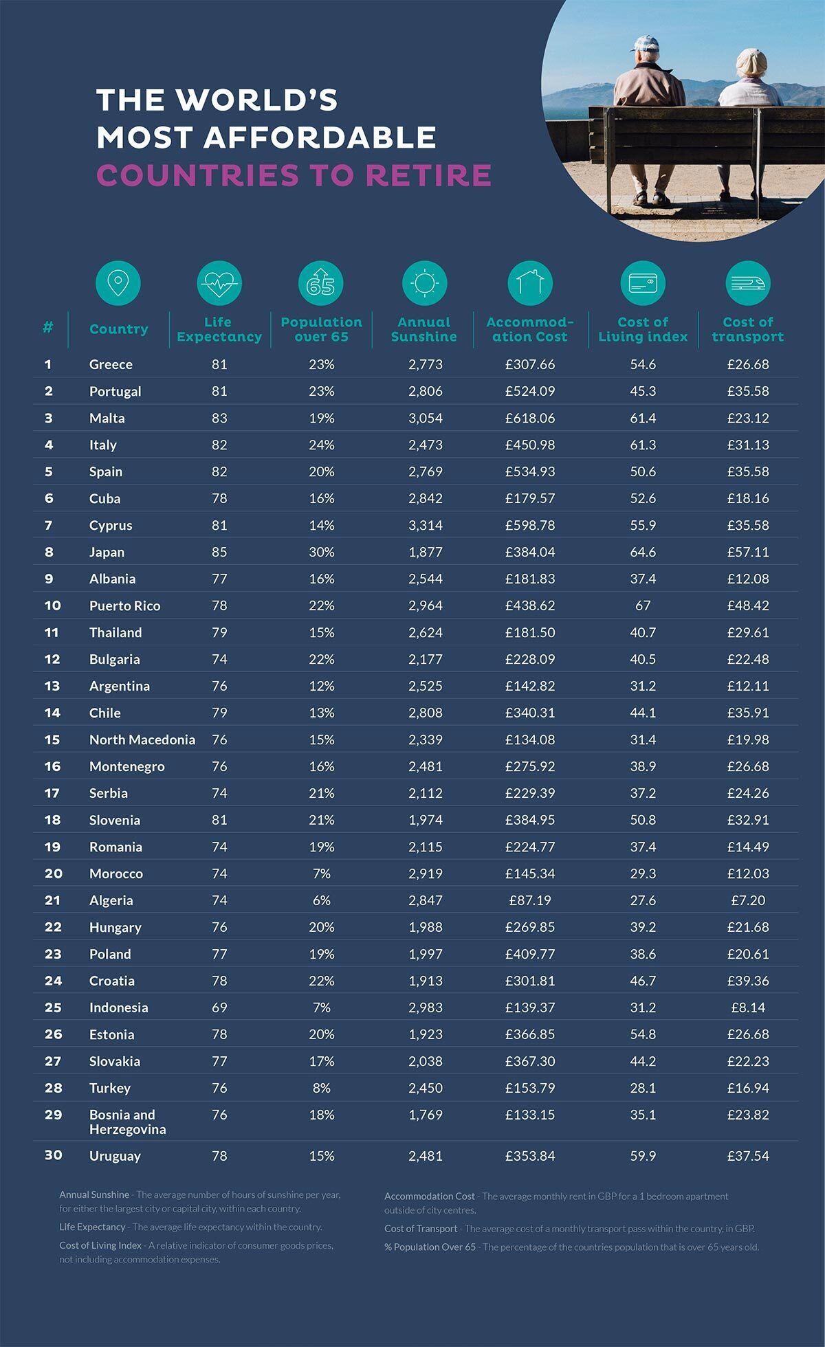 Me mbi 100 vende për të zgjedhur, të gjitha me kultura dhe stile jetese të ndryshme, gjetja e vendndodhjes së përsosur për të jetuar ato vite të arta, mund të shkaktojë dhimbje koke për miliona njerëz çdo vit.