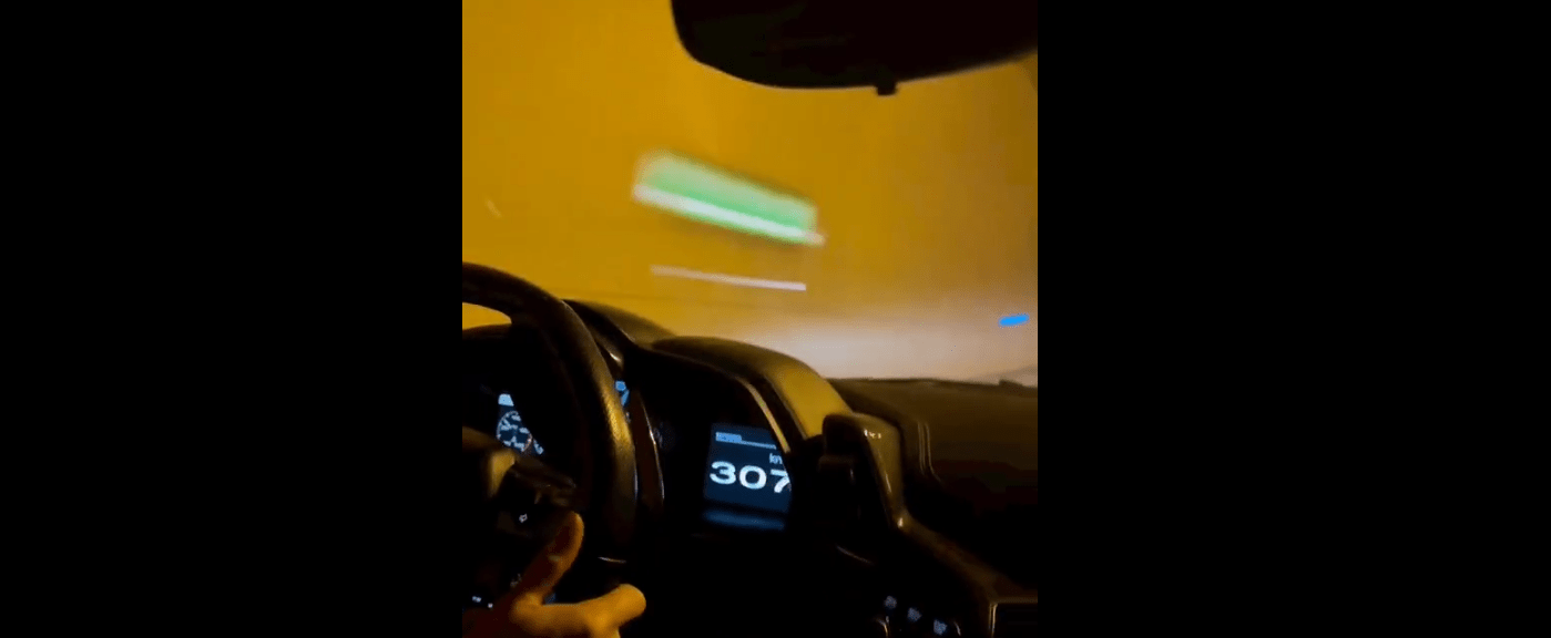 Në drejtimin e mjetit ndodhej Visha ndërsa Clevio si bashkëudhëtar ka bërë videon ku tregohet mjeti duke ecur me shpejtësi marramendëse mbi 300 kilometra në orë ndërsa në një pikë ai arrin shpejësinë 307 kilometra në orë.