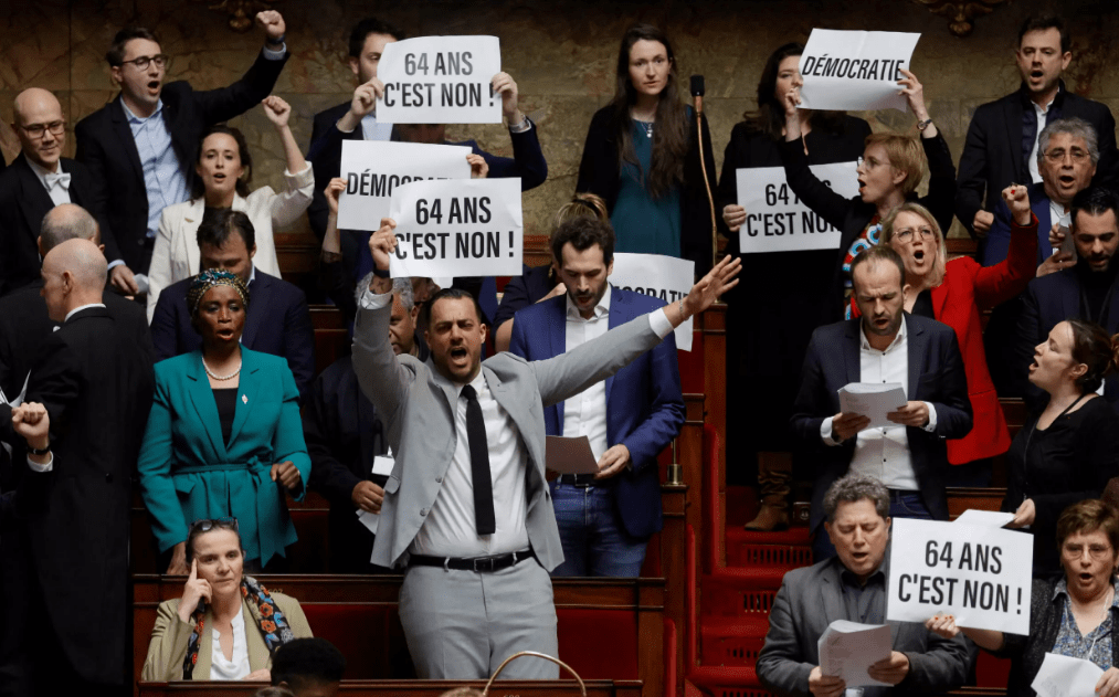 Për Macron, kjo ishte nëna e të gjitha reformave. Për opozitën, veçanërisht aleancën e ekstremit të majtë NUPES (Bashkimi i Ri Popullor Ekologjik dhe Social), ishte nëna e të gjitha betejave të opozitës politike. Sindikatat e fuqishme të Francës ishin gjithashtu në anën e opozitës dhe ata e bënë të qartë me tetë greva mbarëkombëtare gjatë tre muajve të fundit, duke tërhequr mbi një milion njerëz në rrugë pothuajse çdo javë.