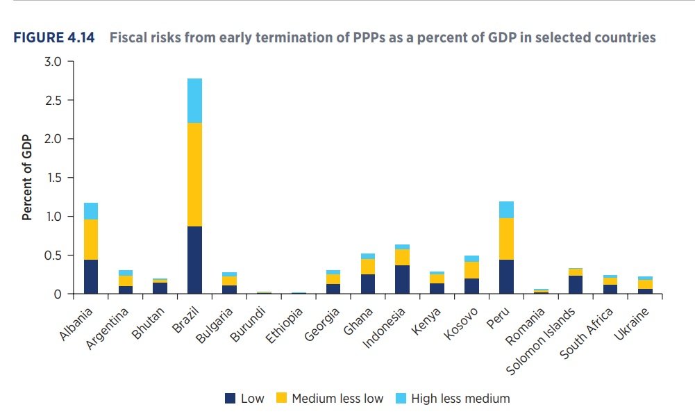 Rreziqet fiskale nga portofoli i PPP-ve llogaritet nga 0.87-2.78 për qind e PBB-së në Brazil, 0.44-1.19 për qind në Peru dhe 0,44–1,17 për qind në Shqipëri (shiko grafikun në fund).