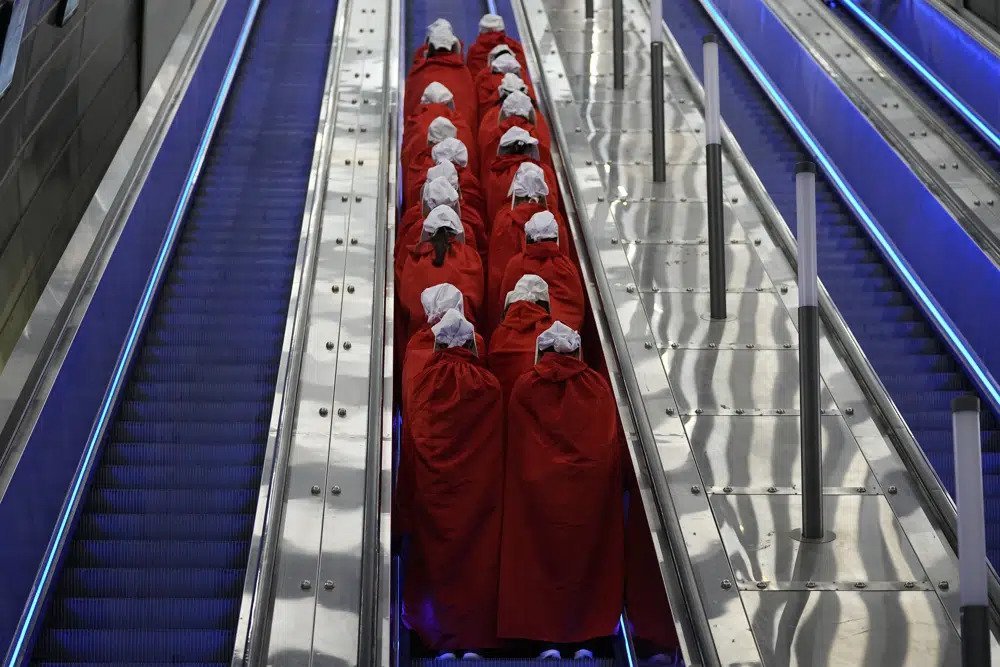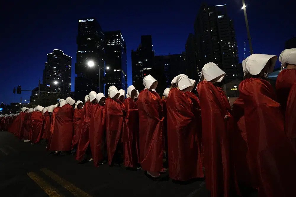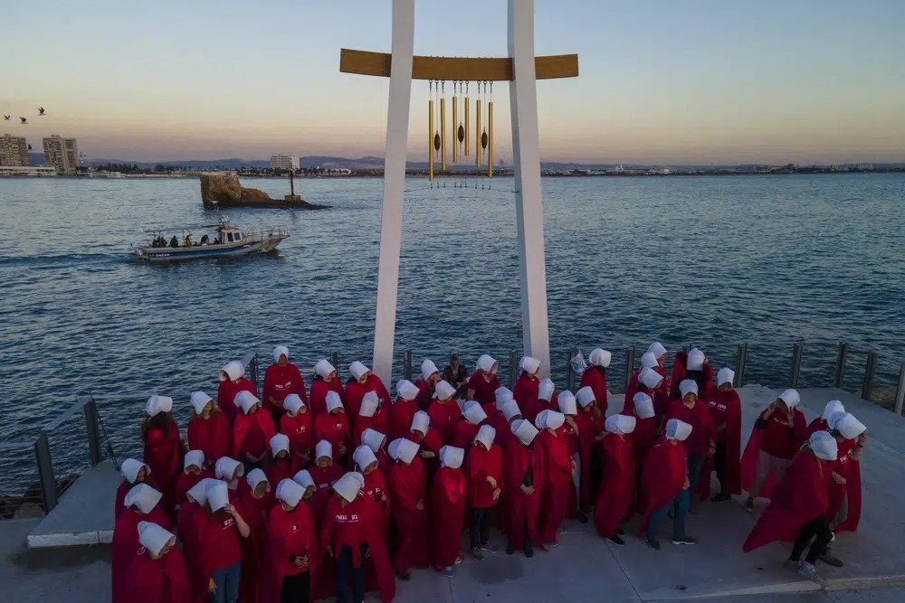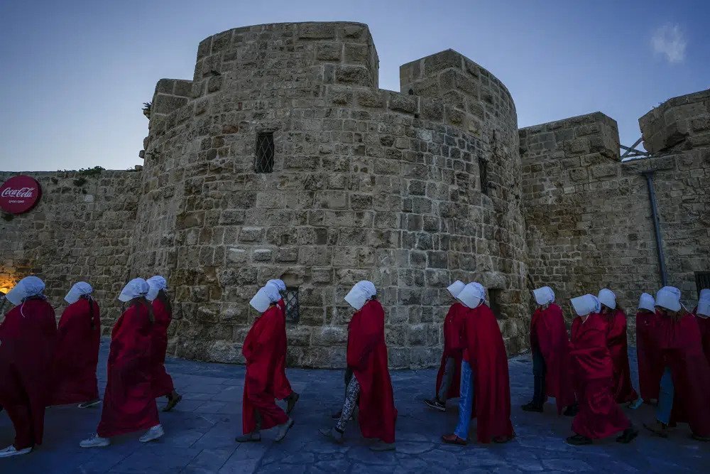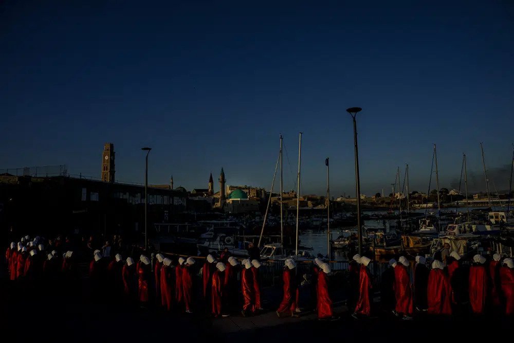 Është kthyer në një objekt ogurzi të protestave masive anti-qeveritare që tronditin Izraelin, një mbështjellje grash me rroba të kuqe flakë dhe kapele të bardha, koka të përkulura në këmbë dhe duar të lidhura. Ata janë të veshur si personazhe nga romani distopian i Margaret Atwood, ‘The Handmaid’s Tale’ dhe seriali me të njëjtin emër.