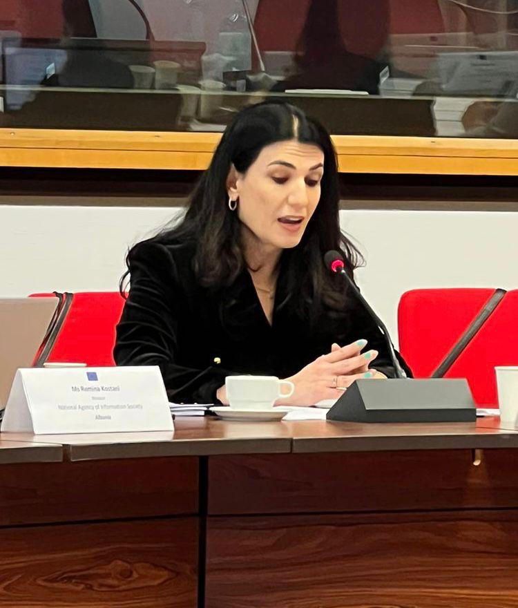 “Në vitin 2017, në Qeverisjen Elektronike në Shqipëri ndodhën dy zhvillime të rëndësishme: Legjitimimi i vulës elektronike, i cili i dha vlerë ligjore të gjitha dokumenteve administrative që gjenerohen përmes portalit e-Albania dhe Qendërzimi i zhvillimit të Qeverisjes Elektronike, i cili bëri Agjencinë Kombëtare të Shoqërisë së Informacionit institucionin kryesor në fushën e digjitalizimit të qeverisjes dhe shërbimeve shtetërore të ofruara qytetarëve, bizneseve dhe administratës publike në Shqipëri. Në fund të vitit 2019, Qeveria shqiptare vendosi fillimin e “Revolucionit Digjital i shërbimeve publike”. Që nga 1 janari 2020, nisi një proces i ri, duke ofruar aplikime për shërbime publike vetëm online për qytetarët dhe bizneset. Në datën 1 maj 2022, filloi jo vetëm aplikimi për shërbime publike, por edhe ofrimi i dokumentit përfundimtar me vlerë ligjore të plotë. Kjo tregon se Shqipëria tani ofron 95% të të gjitha shërbimeve publike vetëm online me vulë/apo me nënshkrim elektronik në fund. Në qershor 2022, Agjenda Digjitale dhe Plani i Veprimit u miratua me një vendim të Këshillit të Ministrave.”- theksoi Karçanaj.