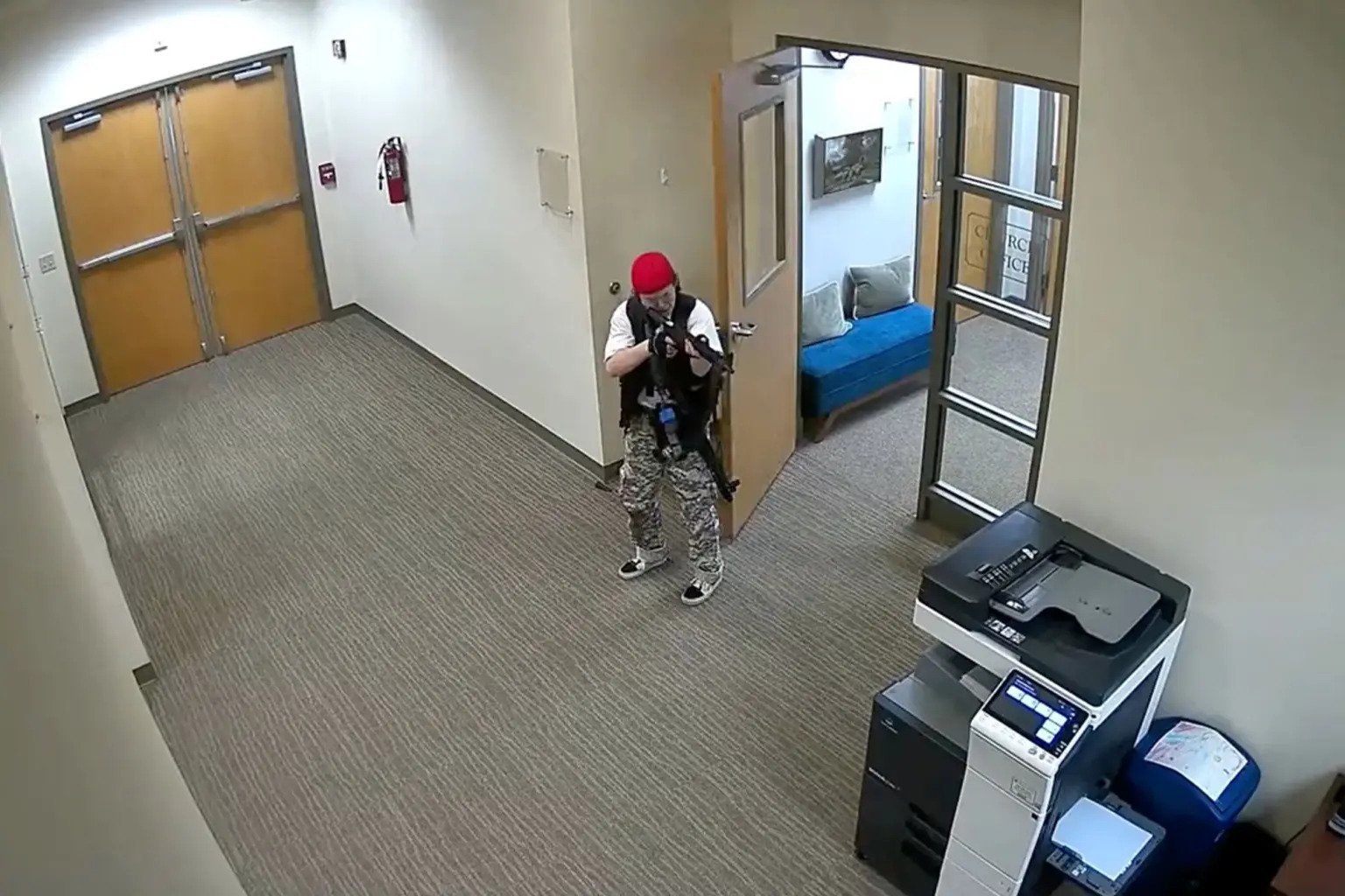 Në vendngjarje, policia dëgjoi të shtëna armësh në katin e dytë dhe nxitoi në hollin e shkollës ku hasi 28-vjeçaren, e cila ishte e armatosur me dy automatikë e një pistoletë.