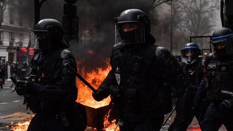 Një protestë për reformën e pensioneve në Paris degjeneroi në dhunë të martën, ndërsa grupet e rebelëve të maskuar u përleshën me policinë e armatosur rëndë.