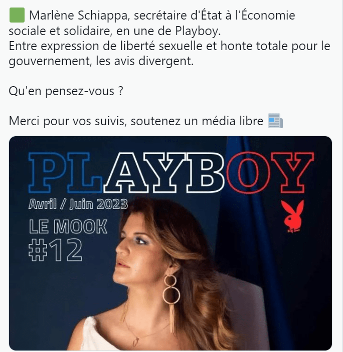 Kryeministrja franceze Elisabeth Borne ka qortuar Marlene Schiappa, Sekretaren e Shtetit për Ekonominë Sociale, për një intervistë për revistën Playboy, raportuan të shtunën disa media franceze, duke cituar një burim të afërt me kryeministren.