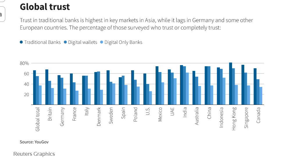 Por një sondazh i vitit të kaluar nga YouGov tregoi se shkalla e besimit në sektorin financiar të Gjermanisë, thelbësore për nxitjen e stabilitetit financiar më të gjerë dhe tërheqjen e kapitalit për të mbështetur rritjen ekonomike, ishte nën mesataren globale, duke mbetur prapa si vendeve Kanadaja, Australia dhe tregjet kryesore aziatike.