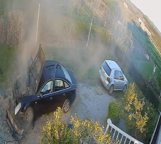 Një prej autorëve shtrihet në tokë nga ana e djathtë e makinës, pranë gomës për të vendosur eksplozivin, ndërsa tjetri e ruan dhe asiston. Montimi i eksplozivit ka zgjatur 6 minuta dhe më pas dy autorët janë larguar.