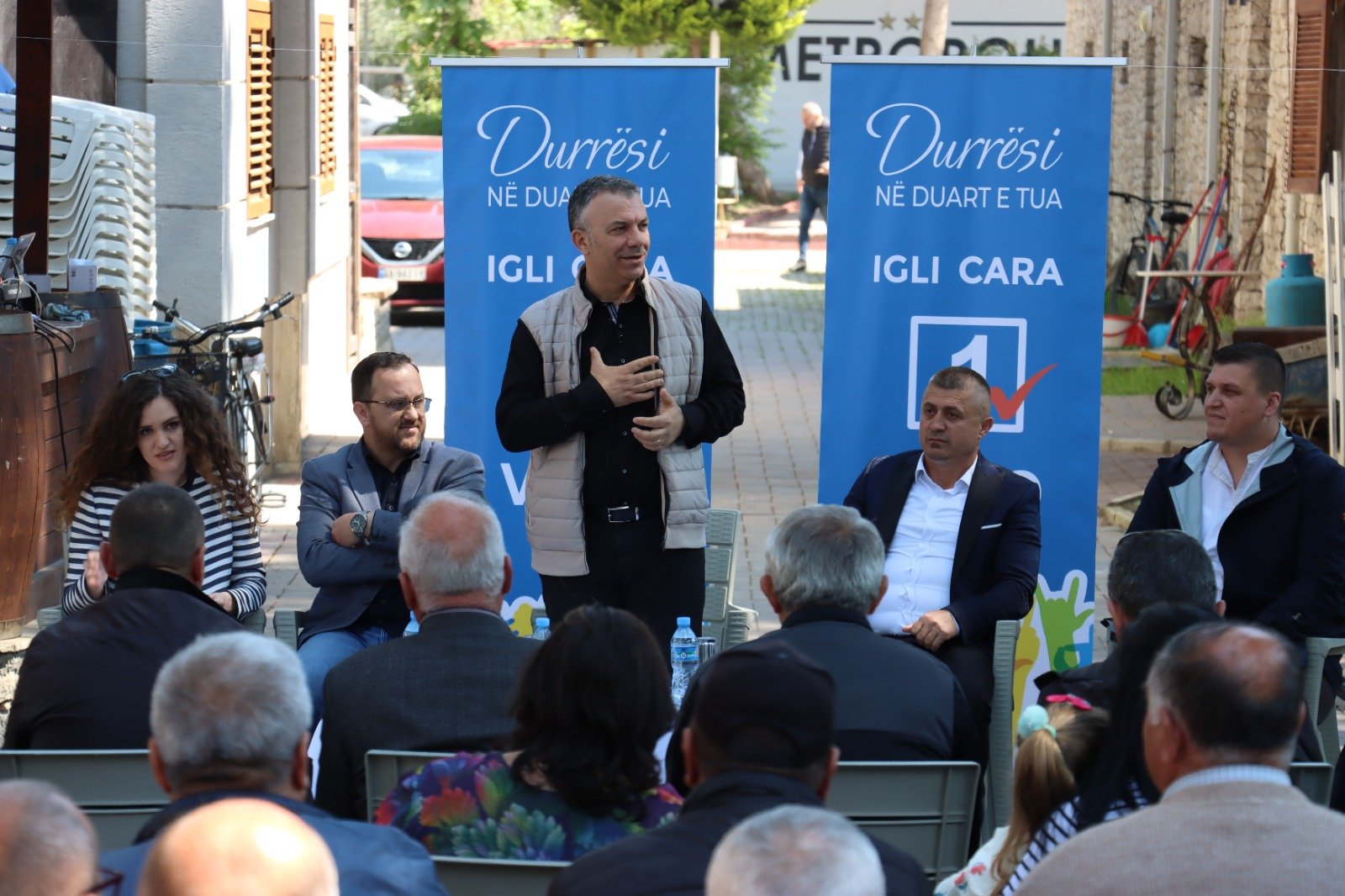 Kandidati i koalicionit “Bashkë Fitojmë” për Bashkinë e Durrësit, Igli Cara gjatë një takimi me banorët e lagjes 13 diskutoi për problematikat që hasin ata.