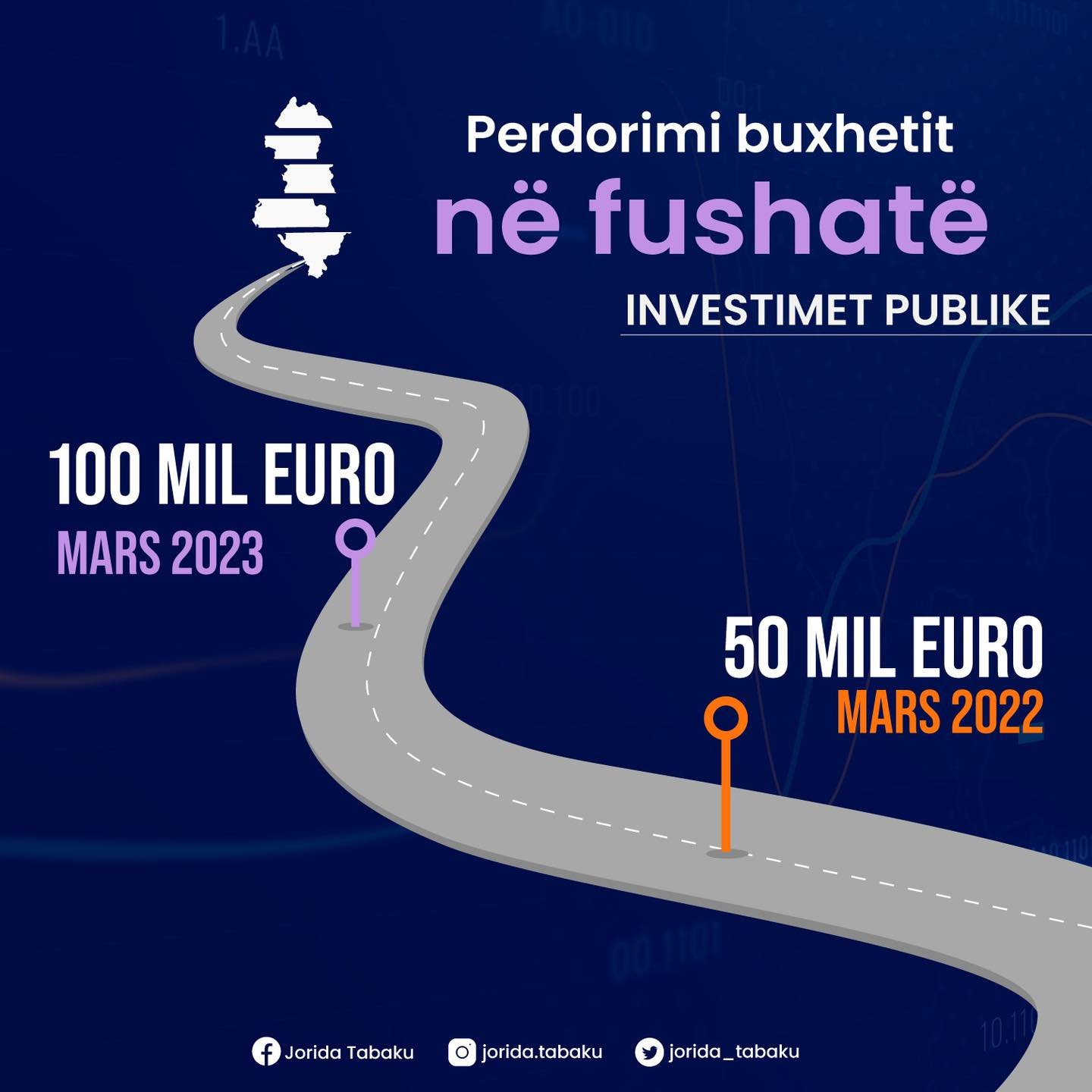 Këtë vit 100 milion euro investime publike në këtë tremujor, gati 4 herë më shumë se një vit më parë.