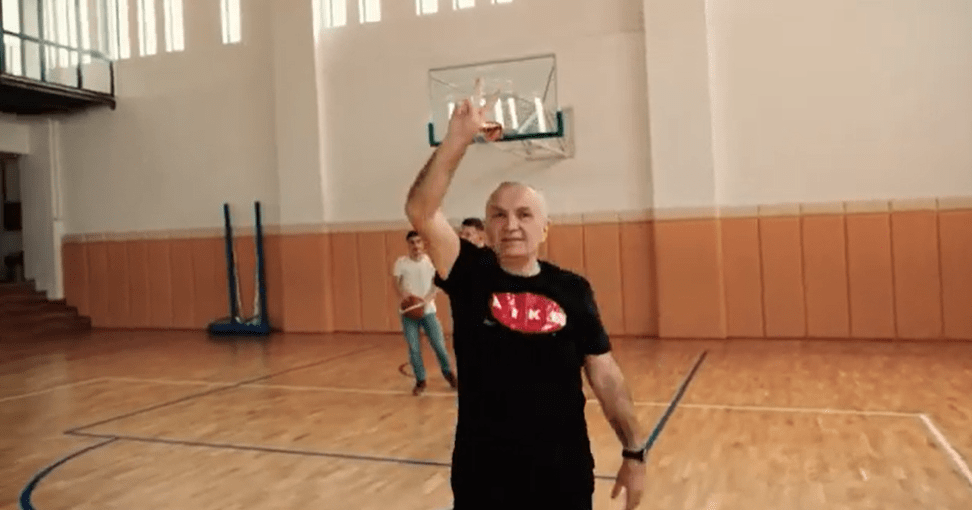 Një video e pazakontë është hedhur në rrjetet sociale nga Kryetari i Partisë së Lirisë, Ilir Meta, i cili shfaqet duke luajtur basketboll me disa fëmijë edhe duke gotiur në shenjë koshin e basketbollit.