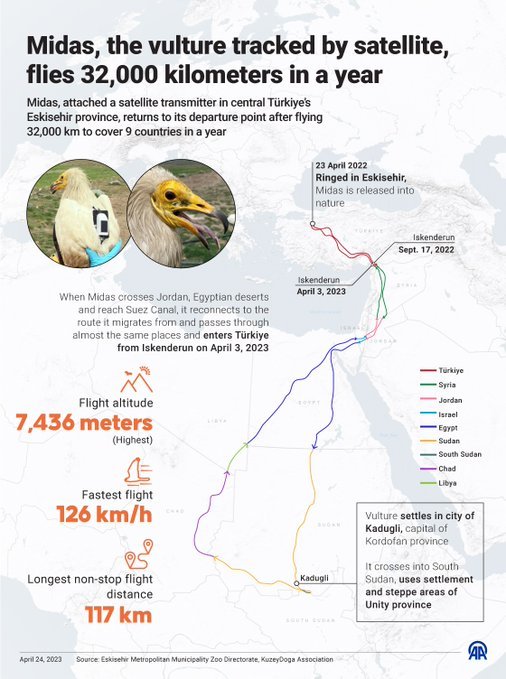 Midas, i cili erdhi në Turqi për të kaluar verën, e përfundoi udhëtimin e tij të migrimit duke u vendosur në Eskisehir, pika ku u rrethua, pas një udhëtimi tre-ditor.