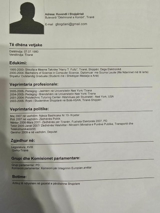 Edhe Gert Bogdani, njësoj si Këlliçi, ka përfunduar Institutin “Harry Fultz”, dhe sipas CV zyrtare të Bogdanit, e depozituar disa vjet më parë në Kuvend, kur ai ishte deputet, ai e ka perfunduar me sukses gjimnazin në vitet 1995-2000.