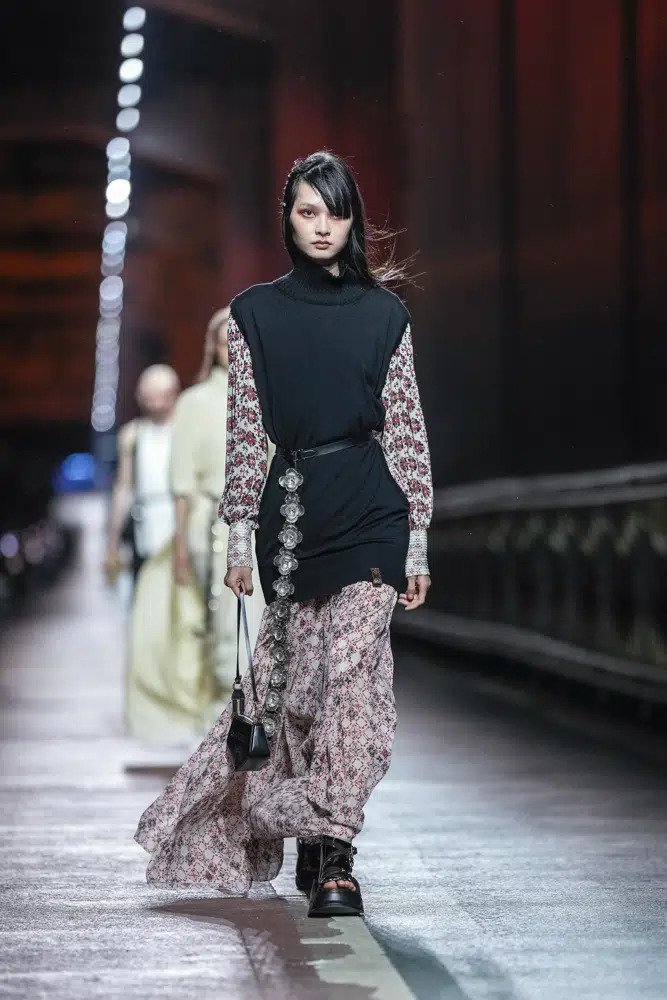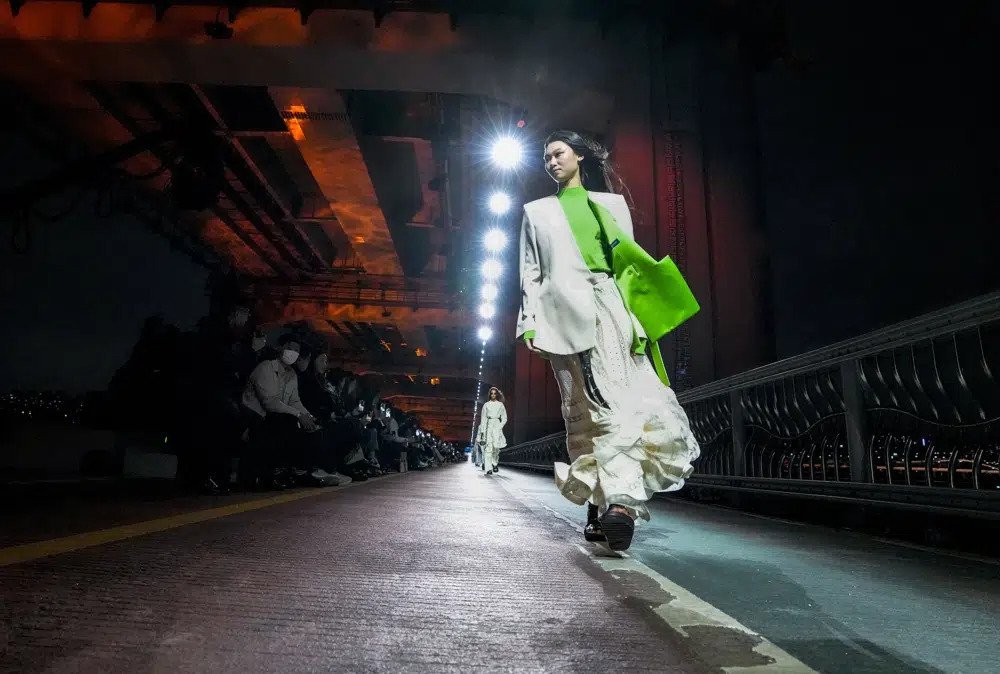 Modelet u ngjitën në urën Jamsugyo për të shfaqur koleksionin e shtëpisë së modës luksoze para vjeshtës, që përfshinte syze dielli, mokasë dhe sandale të trasha bardh e zi, si dhe një shumëllojshmëri çantash të mëdha, shumëngjyrëshe dhe më të vogla të stolisura me logon e etiketës.