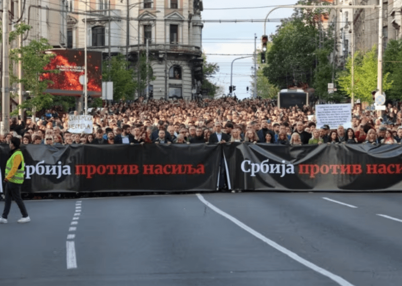 Në protestën me sloganin “Serbia kundër dhunës” morën pjesë anëtarë nga partitë e përçara politike të vendit, të bashkuara pas vrasjeve masive të javës së kaluar – kur 17 vetë u vranë brenda më pak se 48 orëve, përfshirë nëntë në një shkollë fillore në Beograd.