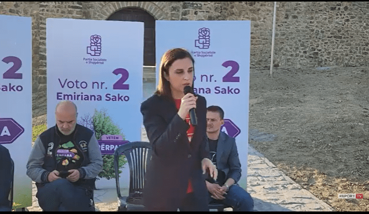 Kryebashkiakja Emiriana Sako, njëkohësisht kandidate e Partisë Socialiste për zgjedhjet e 14 Majit në takimin me banorë të njësisë administrative Ishëm.
