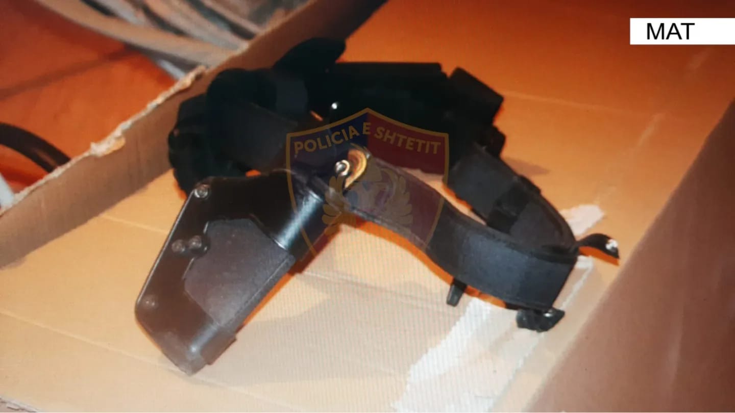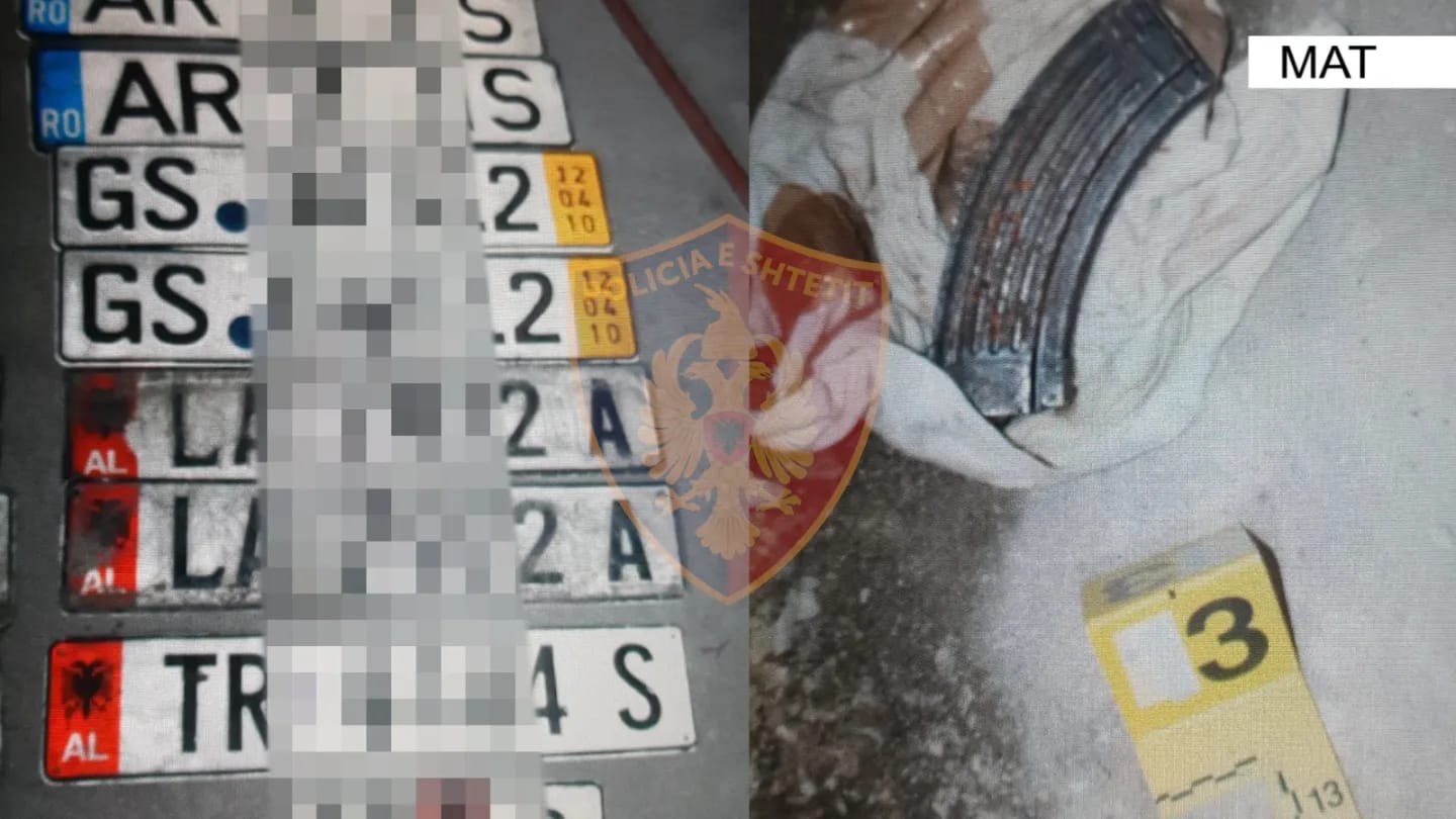 Gjatë kontrollit të banesës, Policia i gjen dhe sekuestron 12 targa automjetesh (2 prej të cilave me mbishkrimin “Policia”, 4 targa të huaja dhe 6 targa shqiptare), një fenelinë, një rrip multifunksional si ata të policisë dhe 1 krehër kallashnikovi.