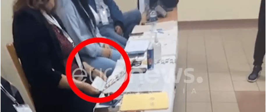 Në një video që qarkullon duket kryetarja e komisionit teksa merr një fletë, që nuk dallohet qartë nëse është fletë votimi apo diçka tjetër dhe e fut poshtë tavolinë.