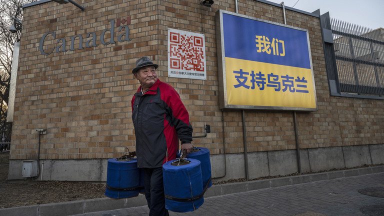Qeveria kineze u ka dërguar një njoftim ambasadave të shumta dhe organizatave ndërkombëtare, duke u kërkuar atyre të heqin tabelat e papërshtatshme nga mjediset e tyre, njoftoi të martën një agjenci japoneze e lajmeve. Kërkesa ka shumë të ngjarë t’i referohet posterave pro-ukrainas të shfaqura nga ambasadat e Kanadasë, Polonisë dhe Gjermanisë.