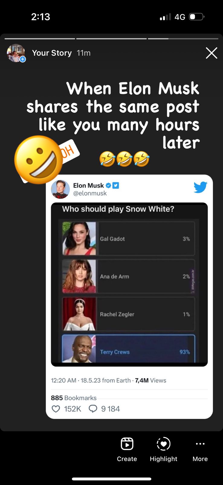 Ky i fundit ka bërë një postim në Instagramin e tij ku memen e Musk e shoqëron me diçiturën: “Kur Elon Musk shpërndan të njëtin postim me tëndin, disa orë më vonë.”