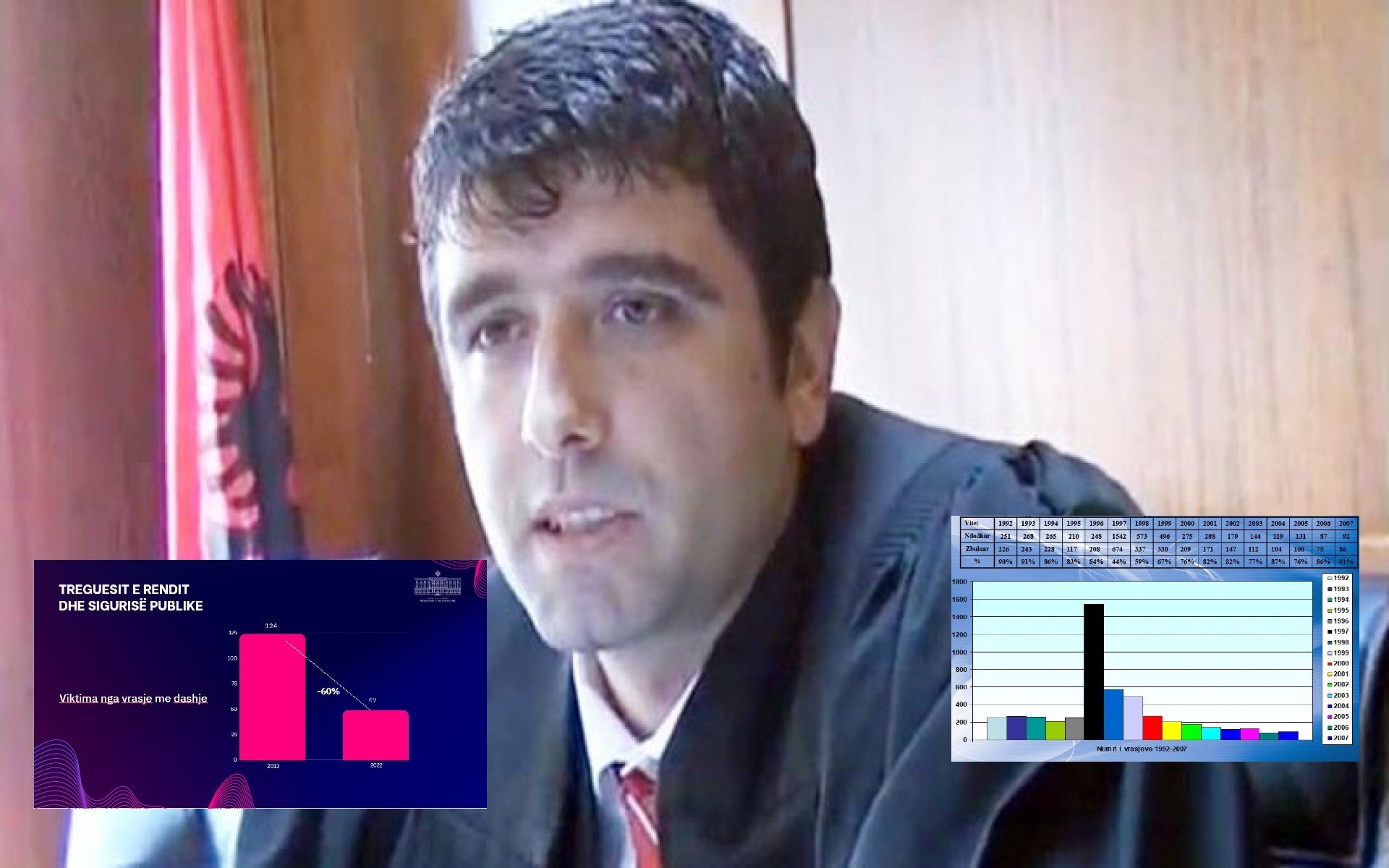 Krimi masiv i viteve ’97-’98 në vendin tonë ishte mjaft i ndërlikuar. Armatosja e shoqërisë e diktati i rrugës përballë ligjit prodhuan aq shumë krime, disa prej të cilave edhe sot vijojnë të jenë pa autor. Në vitin 1997, krimi i vrasjes arriti shifrën maksimale që ishte 50 për qind e kriminalitetit vjetor. Ndodhën 1542 vrasje. Një shifër e tillë nuk ishte regjistruar asnjëhere. Madje edhe vitet e mëparshme, nga 1992 deri në 1996 kishin prodhuar më pak, 1150 vrasje. Nga viti në vit kurba erdhi në ulje, duke shënuar numrin më të ulët në vitin 2022, 43 vrasje me 49 viktima. Të paktën këto janë statistikat zyrtare të Policisë, pa llogaritur persona të zhdukur, që edhe mund të jenë vrarë. Sipas analizave të publikuara nga Ministria e Brendshme dhe Policia e Shtetit vit pas viti, në 30 vjet rezulton të kenë ndodhur 6158 vrasje.