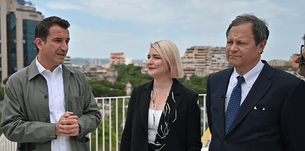 Kryetari i Bashkisë së Tiranës, Erion Veliaj, ministrja e Kulturës, Elva Margariti dhe kreu i Bordit të Fondacionit Shqiptaro-Amerikan për Zhvillim, Michael Granoff, vizituan sot Piramidën e Tiranës.