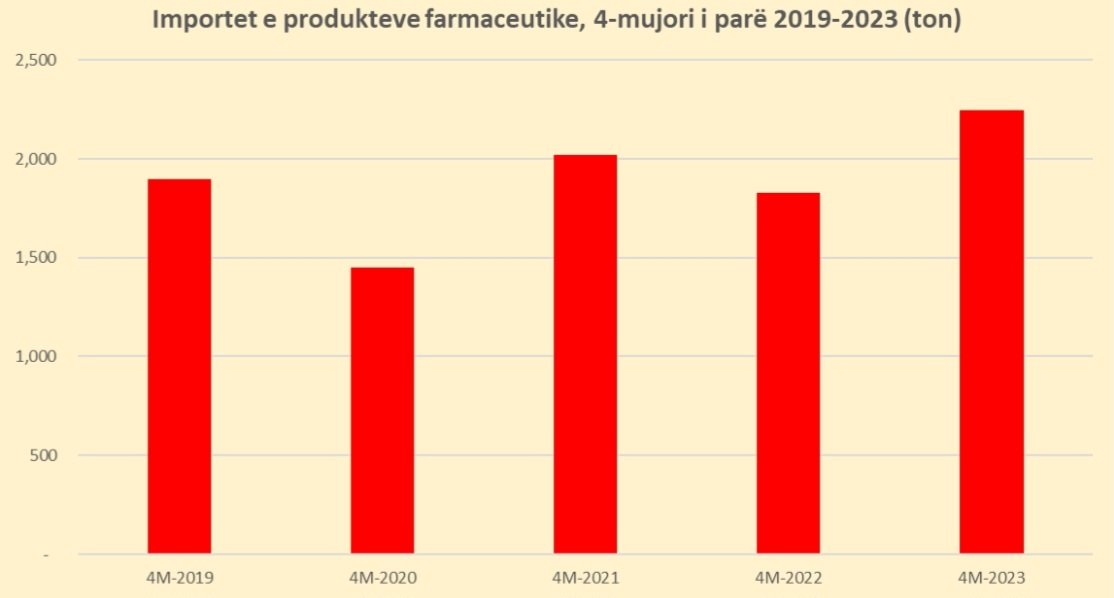 Në katër mujorin e parë të këtij viti importet e produkteve farmaceutike arritën në 2,248 tonë me një rritje 23 për qind në raport me vitin e kaluar në këtë periudhë. Rritja po nxitet kryesisht për dy arsye kryesore;