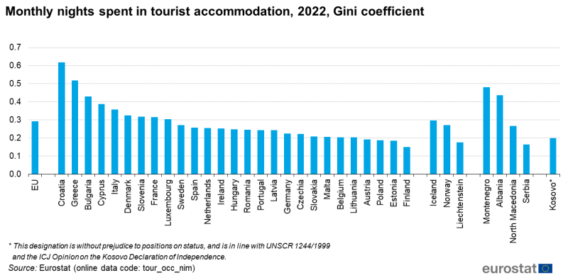Sipas Eurostat, sezonaliteti ka pasur gjithmonë një ndikim thelbësor në turizëm, dukuri e dukshme në modelet e mbërritjeve të turistëve dhe netëve e kaluara në hotelet dhe vendpushimet turistike të BE-së.